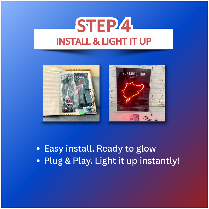 Stylish, handmade LED art of your favourite Grand Prix — perfect for man caves, studios & game rooms.