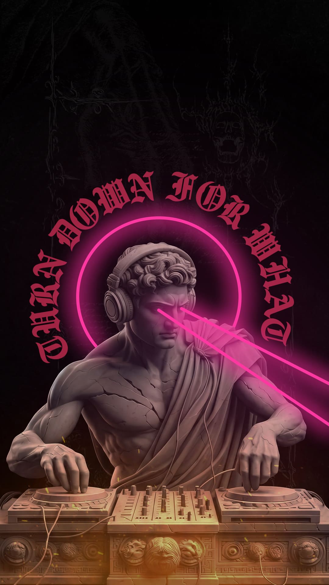 Where classical art meets club energy. “Turn Down for What” captures the rebellious essence of nightlife through a UV Neon LED portrayal of Michelangelo’s David reimagined as a laser-eyed DJ god.